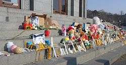 On January 19 dozens of people put candles, flowers and toys on the stairs of the Yerevan Opera House in the memory of the six-month-old Seryozha.[31] In Gyumri, people gathered before the house of the Avetisyan family and left candles there.[32] The infant was buried on January 21 in Gyumri. His funeral service at Gyumri's Surb Nshan Church was attended by hundreds.[33][34]