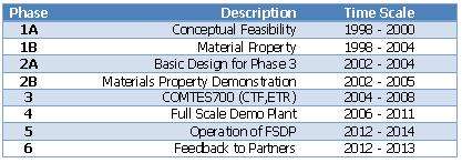 A major R and development program was established comprising six phases of effort that started with a conceptual feasibility study at the beginning of 1998. The table below shows a breakdown of the six phases.