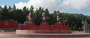 Statue of Anawrahta (far left) along with the statues of Bayinnaung and Alaungpaya in front of the DSA