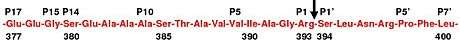 Protease inactivation results as a consequence of trapping the protease in an equimolar complex with antithrombin in which the active site of the protease enzyme is inaccessible to its usual substrate.[10] The formation of an antithrombin-protease complex involves an interaction between the protease and a specific reactive peptide bond within antithrombin. In human antithrombin this bond is between arginine (arg) 393 and serine (ser) 394 (see Figure 2 and Figure 3).[10]