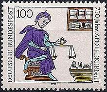 - ↑ "Apothekergewicht: […] In Nürnberg 1555 geschaffen, in Preußen 1816 durch ein eigenes Apothekergewicht abgelöst." Hunnius, C.; Ammon, H.P.T. (2004). Hunnius pharmazeutisches Wörterbuch (9. Auflage ed.). Berlin: de Gruyter. ISBN 3-11-017475-8.