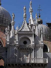 Bartolomeo alone worked at a portal of the Scuola Grande di San Marco (a lunette is now housed in the Victoria and Albert Museum in London), the portal of San Polo and the Porta della Carta, which connects the Ducal Palace to St. Mark's Basilica.