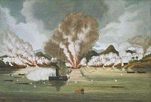 The Battle of Tysami was a military engagement involving a warship from the British China Squadron and the Chinese pirates of Chui A-poo. It was fought in September 1849 off Tysami, Harlaim Bay, China, and ended with a Royal Navy victory. It was also the precursor engagement to the larger Battle of Pinghoi Creek where Chui A-poo's fleet was destroyed.[1]