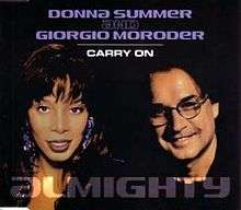 "Carry On" is a song written by recording artists Donna Summer and Giorgio Moroder. The song was first released on Moroder's 1992 album Forever Dancing. The following year, the song closed Summer's two-disc set The Donna Summer Anthology. During the 1970s Moroder had co-written and co-produced a large number of Summer's disco hits, and this song marked the first time the two had worked together in more than a decade.