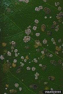 | Infestation of Cephaleuros virescens | |