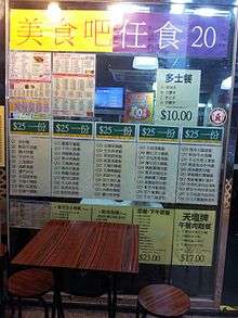 Fei Du Du Cha Chaan Teng, owned by Stephen Cheng in Tsuen Wan, was the first representative letting consumers order buffet on 1 March 2013 which creates a new dining trend. The idea first appeared 10 years ago when Stephen was facing high rent and he decided to apply a new method to run his business.[1] Although in the first week of launching the buffet, it was not as popular as his expectation, later it was reported by the media, more than 70 people waiting for seat time over two hours. After the great success of him, several restaurants tried to follow the trend, including Wo Heng Restaurant.