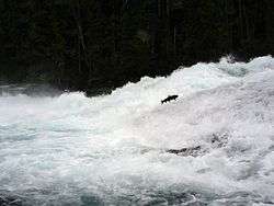 Bailey's Chute is a good place to view the Chinook as they try to leap the falls from mid-August through September. They are the largest of the Pacific salmon, weighing from 8 kg to 22 kg. Most spawn near The Horseshoe after a life cycle of four to six years.[5]