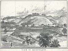 | Maespoeth Junction locomotive shed during early 1980s restoration work. | |