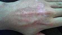An aerosol burn is an injury to the skin caused by the pressurized gas within an aerosol spray cooling quickly, with the sudden drop in temperature sufficient to cause frostbite to the applied area.[1] Medical studies have noted an increase of this practice, known as "frosting", in pediatric and teenage patients.[2][3]
