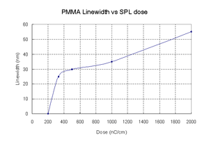 - A 20 nm resolution had also been demonstrated using a 3 nm 100 keV electron beam and PMMA resist.[30] 20 nm unexposed gaps between exposed lines showed inadvertent exposure by secondary electrons.