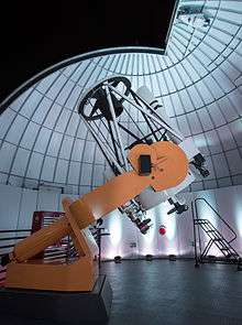 Embry-Riddle Observatory, originally known as Embry-Riddle Creekside Observatory, began in a Technical Innovations Pro-Dome 15 feet (4.6 m) dome located between the Lehman Engineering Building and a creek that ran through campus. In 2012, Embry-Riddle broke ground on the new 140,000 sq-ft College of Arts and Sciences building which included a 30.5 feet (9.3 m) Ash Dome on the roof.[1] Upon completion of the building, existing telescopes were moved from the Creekside Observatory to the new building and the university installed a new 1-meter Ritchey–Chrétien telescope in June, 2014.[2]