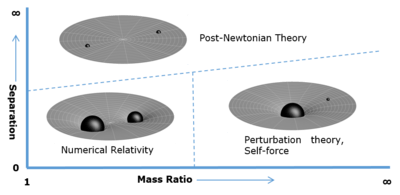 One common approach is to expand the equations of motion for an object in terms of its velocity divided by the speed of light, v/c. This approximation is very effective if the velocity is very small, but becomes rather inaccurate if v/c becomes larger than about 0.3. For binary systems of comparable mass, this limit is not reached until the last few cycles of the orbit. EMRIs, however, spend their last thousand to a million cycles in this regime, making the post-Newtonian expansion an inappropriate tool.[1]