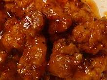 General Tso's chicken (pronounced [tsu̯ò]) is a sweet, slightly spicy, deep-fried chicken dish that is served in North American Chinese restaurants. The dish is named after Zuo Zongtang (formerly romanized Tso Tsung-t'ang), a Qing dynasty statesman and military leader, although there is no recorded connection to him nor is the dish known in Hunan, Zuo's home province.[1]