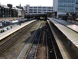 Harrogate railway station serves the town of Harrogate in North Yorkshire, England. Located on the Harrogate Line it is 18.25 miles (29 km) north of Leeds. Northern operate the station and provide nearly all passenger train services except a daily Virgin Trains East Coast service to and from London King's Cross.