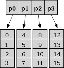 As defined by Sitarski, a hashed array tree has a top-level directory containing a power of two number of leaf arrays. All leaf arrays are the same size as the top-level directory. This structure superficially resembles a hash table with array-based collision chains, which is the basis for the name hashed array tree. A full hashed array tree can hold m2 elements, where m is the size of the top-level directory.[1] The use of powers of two enables faster physical addressing through bit operations instead of arithmetic operations of quotient and remainder[1] and ensures the O(1) amortized performance of append operation in the presence of occasional global array copy while expanding.