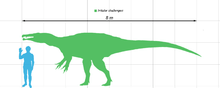 Irritator is a genus of spinosaurid dinosaur that lived in the early Cretaceous Period (Albian stage), around 110 million years ago. Current estimations indicate a length of 8 meters (26 feet).[1] In 2010, Gregory S. Paul gave lower estimations of 7.5 metres and one tonne.[2] It was found in Brazil. Irritator was a theropod with an unusually shaped crest at the rear of its head, and most likely consumed fish.