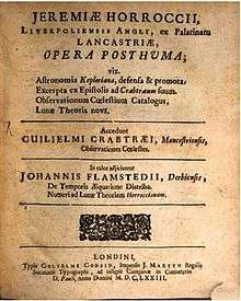 - ↑ Opera Posthuma of Jeremiah Horrocks, ed. John Wallis, London, 1672.
