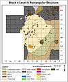 Semi-Subterranean structures were spaced considerably further apart. This suggests a decline in the level of genetic relatedness between structure occupants and indicates that sharing between structure occupants also declined. Storage in the deepest occupational levels of Semi-subterranean Structure 1 was composed of a single large pit in the floor. These lower occupational layers were not associated with kitchen rocks. Internal storage features were not present in later occupational levels of Semi-Subterranean Structure 1. However, kitchen rocks were used during the later occupations of Semi-Subterranean Structure 1. Rectangular Structures were spaced further apart than the pithouses, but were not spaced as far apart as Semi-Subterranean structures. No recognizable internal storage features were encountered in either Rectangular Structure 1 or 2. This implies that either storage was practiced in a form that did not leave a recognizable archaeological signature, or all storage was exterior. Both of the Rectangular Structures contained kitchen rocks.