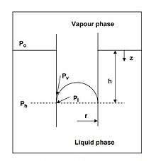 - ↑ Robert von Helmholtz (1886) "Untersuchungen über Dämpfe und Nebel, besonders über solche von Lösungen" (Investigations of vapors and mists, especially of such things from solutions), Annalen der Physik, 263 (4): 508–543. On pages 523–525, Robert von Helmholtz converts Kelvin's equation to the form that appears here (which is actually the Ostwald–Freundlich equation).