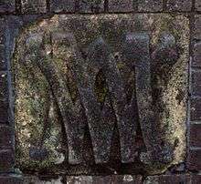 The 1911 OS map refers to Mains Lodge as 'Muir Lodge' after William Muir who built Mains House. The Muir family owned the Bath Lane Tannery, near the Beith Health centre of today (2011) and built the Bark Mill. William Muir of Mains joined John Muir and Sons, Tanners, Curriers, and Fancy Leather Manufacturers as a partner in 1846.[50] Laigh Mains, also demolished, was the home farm of Mains House. Dr McCusker, a GP based in Glasgow, owned Mains House at the time of WW2, followed by Mr Dewar, prior to its purchase and demolition which resulted from the establishment of Whisky Bonds here by Ballantyne Whisky Company in 1968, following the disaster of the Cheapside Street Whisky Bond Fire. There were engraved stones with the initials of Mr and Mrs Muir on the Mains House and these were saved when the house was demolished circa 1975 and now form part of a garden within the grounds of the bonded area. Davis records that the original single storey house of 1764 with its attic were used as a service wing to the crow stepped house had the appearance of a double version of the lodge house.[51]