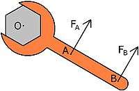 A muscle's moment arm is defined as the perpendicular distance from the muscle's line of action to the joint's center of rotation. As a general rule, the larger the moment arm of a muscle, the greater torque it can produce with the same amount of force. At the same time, the muscle would cause a smaller change in joint angle for the same amount of length change. As an example, holding a wrench at the very end of the handle (point B) makes it easier to loosen a bolt, however, requires your hand to travel a greater distance compared to holding the wrench closer to the bolt (point A). Although both the cheetah and greyhound are similar in size, the cheetah can attain speeds nearly twice as fast as the greyhound. This can be explained partly by the finding that moment arms of muscles at the knee and ankle joint in the cheetah are proportionally larger than those of the greyhound.[4] A similar comparison can be made between two similar species of lizards. It was found that geckoes more adapted for climbing have greater hip and shoulder retractor moment arms. Geckoes adapted for horizontal locomotion have greater knee and ankle extensor moment arms.[5]