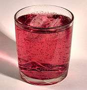 A glass of Raspberryade (as named and marketed by A.G. Barr in the U.K.)