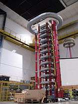 Marx generator used for testing high-voltage power-transmission components at TU Dresden, Germany