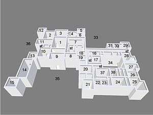 The second wife of the sixth Earl, Eva Primose, Countess of Rosebery (DBE), was interested in the arts and was acquainted with Kenneth Clark and other national art museum directors.[18] As a result of Lady Rosebery's friendships, Mentmore was chosen by the British government to store part of the British national art collections during the Second World War. The collections of the National Portrait Gallery were subsequently stored at Mentmore for the duration of the war, along with pieces from the Royal Collection, including the Gold State Coach.[18] Further works transferred to Mentmore included the portraits from Speaker's House in the Palace of Westminster, and tapestries, furniture and Grinling Gibbons carvings from Hampton Court Palace.[19]