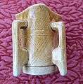 Visitors were formally welcomed in 'peace and friendship' with a mether and the guest would pass the cup only to his right (sun-wise) for luck. The cup would be held in both hands.[9] Intended also for the communal drinking and drinking bouts by the common people the mether is designed to be used by drinking from one of the four broad corners and if a drink is taken in haste the mead will flow onto the person concerned with humorous consequences adding to the festive air on the occasions of rural tasks such as funerals, weddings, fairs, sowing, haymaking, reaping, threshing, thatching, etc.[10]