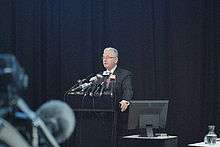 The day after the defeat of Labour in the 2008 general elections and Helen Clark's resignation as party leader, Cullen announced his resignation as deputy leader of the Labour Party.[12] When he resigned from Parliament in 2009 he was replaced as an MP from the party list by Damien O'Connor.