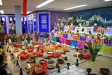 From 31 October to 2 November, friends and family will come and visit the ofrendas. These visitors will bring items for the ofrendas, generally things that the deceased liked in life. As the visitors come by, the ofrenda grows. Hosts reciprocate by offering food and drink to the visitors.[3]