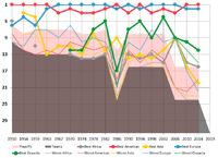 | 7 | 4 | 1970 | 2014 | 11th place (1970) | |