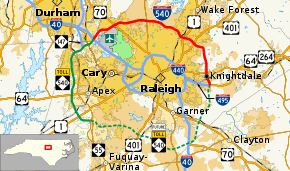 Interstate 540 (I-540) and North Carolina Highway 540 (NC 540) are part of a partially completed beltway around the city of Raleigh in the U.S. state of North Carolina forming the Raleigh Outer Loop.