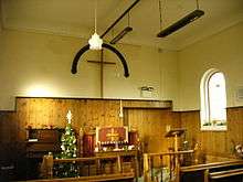 In later years, some additions were made to the structure, to provide for toilets and a kitchen. The different brickwork on the photo of the rear of the building shows this. The outside of the main chapel is now painted white, and is of the same brick as the "Sunday School" at the rear. Modern brick gives away the later extensions. The porch also appears to be a later addition, not matching the simplicity of the original architecture, and having two layers of flashing over the join to the building.