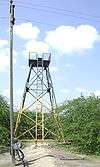 - at the constables post on Kodaikarai beach at the end of the road near the southwest corner of the sanctuary is a tall damaged watchtower that requires a police escort to climb. It is not in the sanctuary, but provides a good view of it.[5]