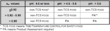 - Except as specified in Subparagraph (3)(d) of this definition, a FOOD that because of the interaction of its AW and PH values is designated as Product Assessment Required (PA) in Table A or B of this definition: