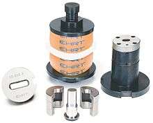 Quick change tool system, plug and punch(left:Die, in the front:Punch, Split punch retainer, back: Tool body, right:punch guide)