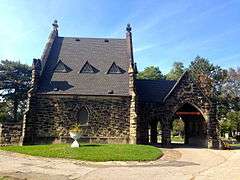 - 1 2 3 4 5 "The Chapel, Riverside Cemetery, Cleveland, O.". Park and Cemetery. December 1898. pp. 194–195. Retrieved November 21, 2016.