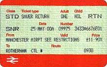 There have been few significant changes since then, with frequent changes in the design of the Railcard being the most noticeable. On all types of ticket for which a discount is available, the level is 34%, as it has been since the changes of 1992; and the types of tickets which receive discounts remains largely the same.[9] The discount is also available on most new ticket types introduced since then, such as SuperAdvance and Virgin Value. Similarly, there has been little change in the types of ticket excluded from receiving discounts; these are summarised here. The restriction on journeys made in the morning peak in the former Network SouthEast area (now known as the "London and South East area") also remains.[10]