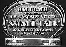 Small Talk is a 1929 Our Gang short comedy film directed by Robert F. McGowan.[2] Produced by Hal Roach and released to theaters by Metro-Goldwyn-Mayer, it was the 86th entry in the Our Gang series to be released, and the first to be made with sound.[3]