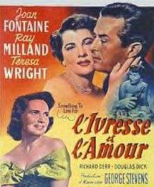 Something to Live For is a 1952 American drama film starring Joan Fontaine, Ray Milland, and Teresa Wright, directed by George Stevens, and released by Paramount Pictures. The screenplay by Dwight Taylor was the first to focus on the Alcoholics Anonymous program as a means of overcoming an addiction to liquor.
