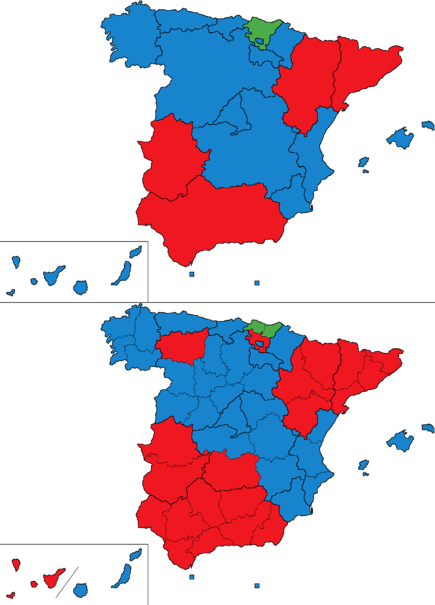 | 8 × 3 = 24 | Asturias(–1), Balearic Islands(+1) and Las Palmas(+1) |