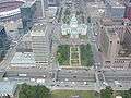 View of the Old Courthouse from the observation area at the top of the arch. Kiener Plaza is directly behind it.