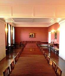 Members of the Hall are entitled to invite guests to all meals. A tradition of the Hall is that there is one Common Table for all members,[8] with the result that fellows, lecturers, monks, students, and their guests mix freely. There is only one single, Common Table in the refectory (dining hall) which is unique in the University of Oxford.