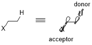 Stereoelectronic effect generally includes a donor–acceptor interaction. The donor is usually a higher bonding or nonbonding orbital and the acceptor is often a low-lying antibonding orbital as shown in the scheme below. As known from the orbital–orbital interaction requirement, if this stereoelectronic effect is to be favored, the donor–acceptor orbitals must have a low energy gap and they must retain antiperiplanar geometry to allow for perfect interacting direction.