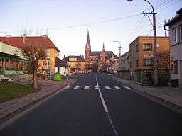 Centre of town with Saint John the Baptist Catholic Church in the background