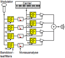 Analysis/resynthesis is a form of synthesis that uses a series of bandpass filters or Fourier transforms to analyze the harmonic content of a sound. The results are then used to resynthesize the sound using a band of oscillators. The vocoder, linear predictive coding, and some forms of speech synthesis are based on analysis/resynthesis.
