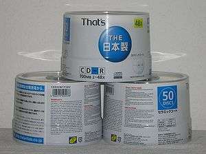 Taiyo Yuden branded products were not common outside Japan (where Taiyo Yuden media had a market share of about 60%) but unbranded CDs and DVDs were available from some online retailers. Rebranded Taiyo Yuden media could be found under Fujifilm, Fusion, Maxell (Maxell Music CD-R, Maxell CD-R Pro, and Maxell CD-R Music Pro (discontinued)), Miflop, Panasonic, Plextor, Sony (Sony Music CD-R (discontinued 2008)), TDK, and Verbatim Corporation brands.[16] In Japan, Korea and Greece, Taiyo Yuden was distributing its own brand "That's".