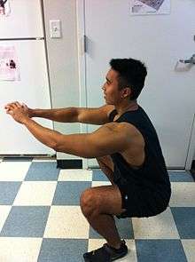 The second way to prevent a meniscus tear is to strengthen and stretch the major leg muscles.[10] Those muscles include the hamstrings, quadriceps, and calf muscles. One popular exercise used to strengthen the hamstrings is the leg curl. It is also important to properly stretch the hamstrings; doing standing toe touches can do this. Seated leg extensions strengthen the quadriceps and doing the quadriceps stretch will help loosen the muscles. Toe raises are used to strengthen and stretch the calves.[10] Adequate muscle mass and strength may also aid in maintaining healthy knees. The use of the parallel squat increases much needed stability in the knee if executed properly. Execution of the parallel squat will develop the lower body muscles that will strengthen the hips, knees, and ankles.[11]