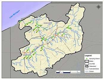 The Trail Creek Watershed, located in northwestern Indiana’s LaPorte County, drains a 59.1 square mile area of mixed land uses into Lake Michigan at Michigan City, IN. The watershed comprises three sub-watersheds: The Main Branch, the East Branch and the West Branch. The Main Branch sub-watershed has the greatest amount of developed land, including commercial, industrial and residential lands. The East Branch and West Branch sub-watersheds are primarily rural in character, including a mix of row crop agriculture, livestock, hayfield, low-density development and natural areas.[4]
